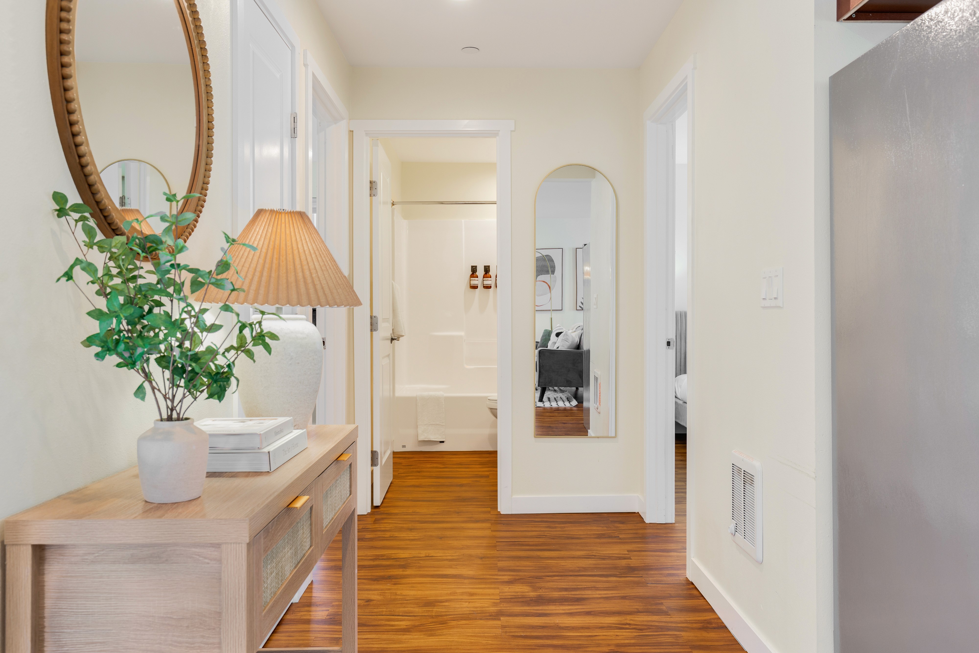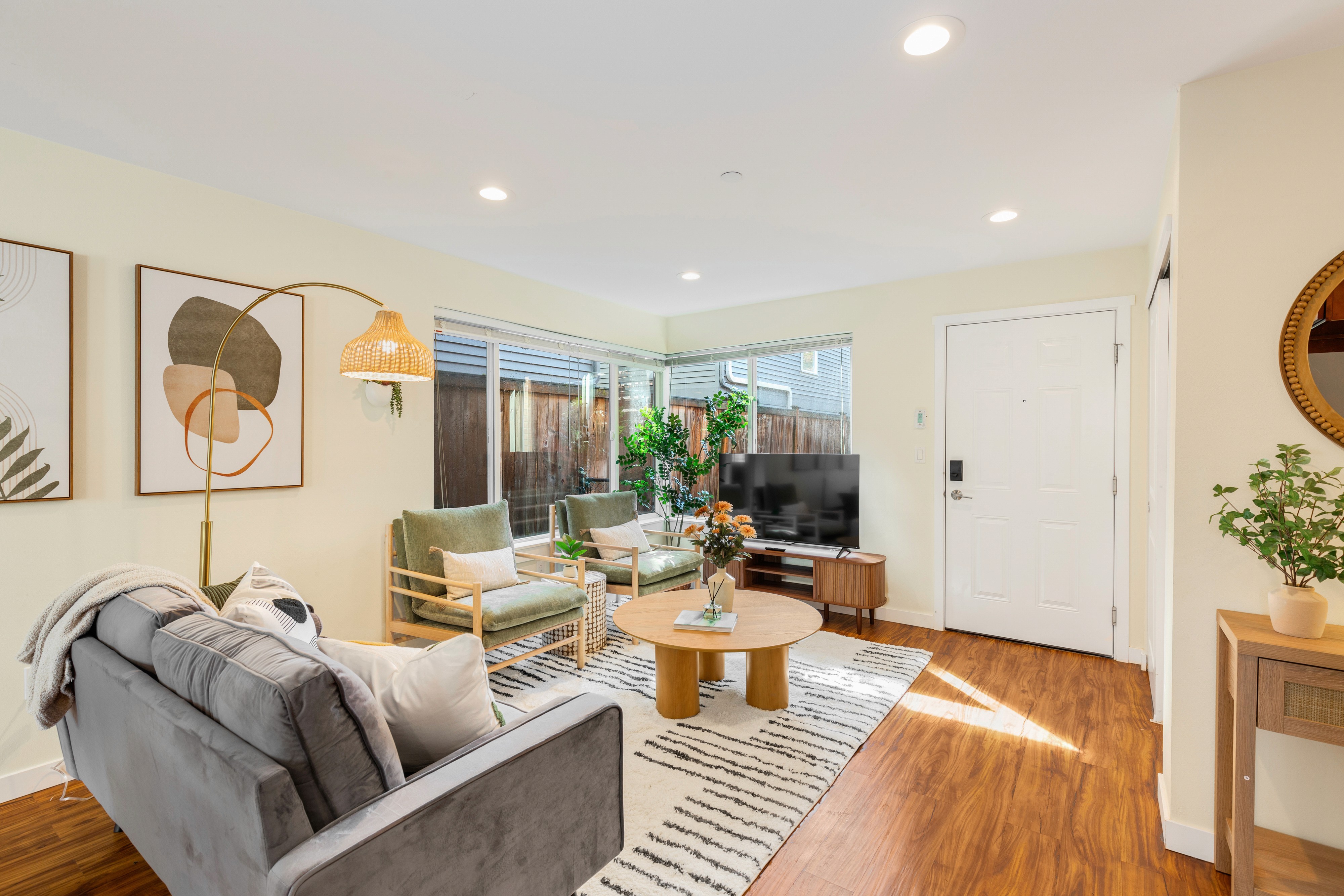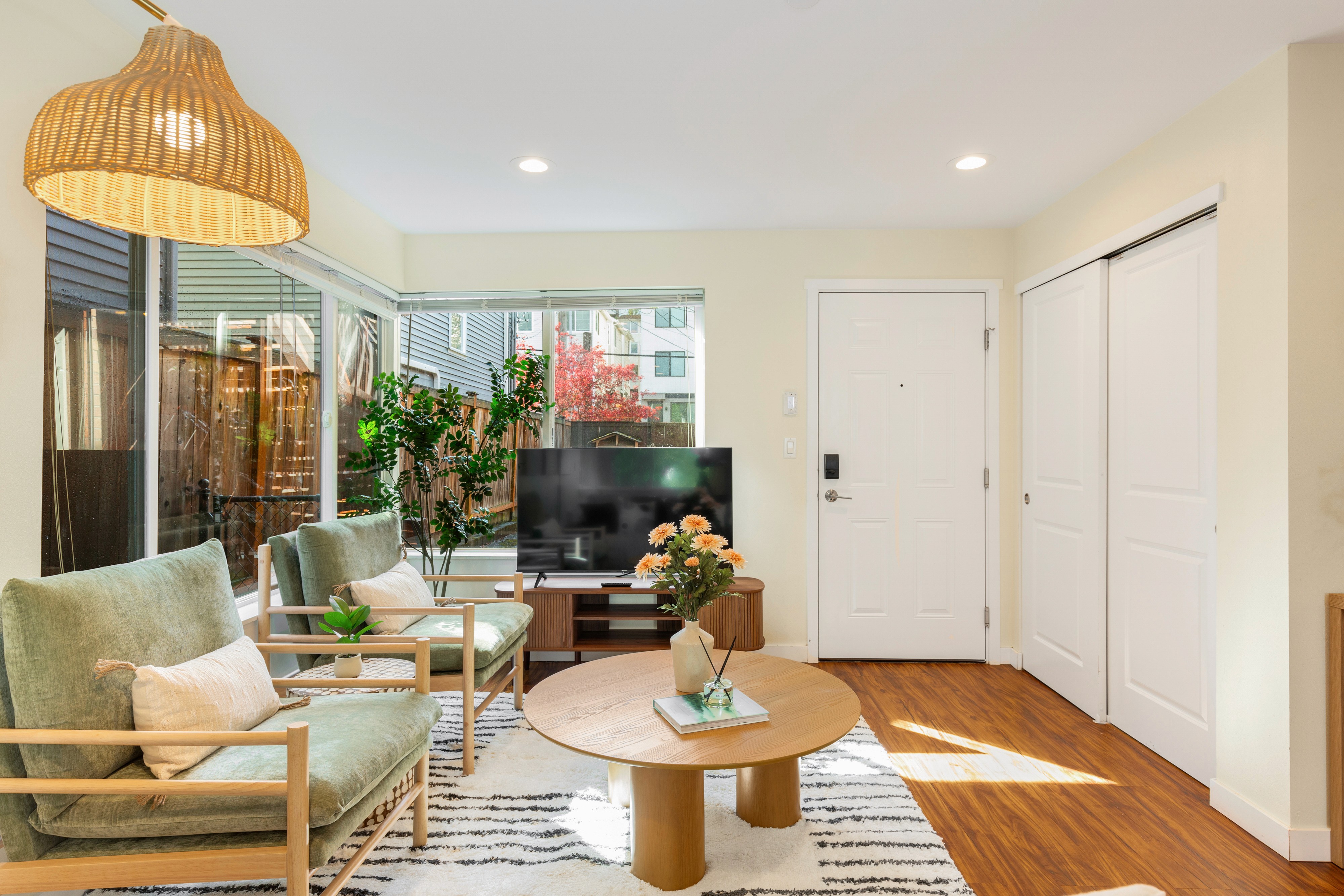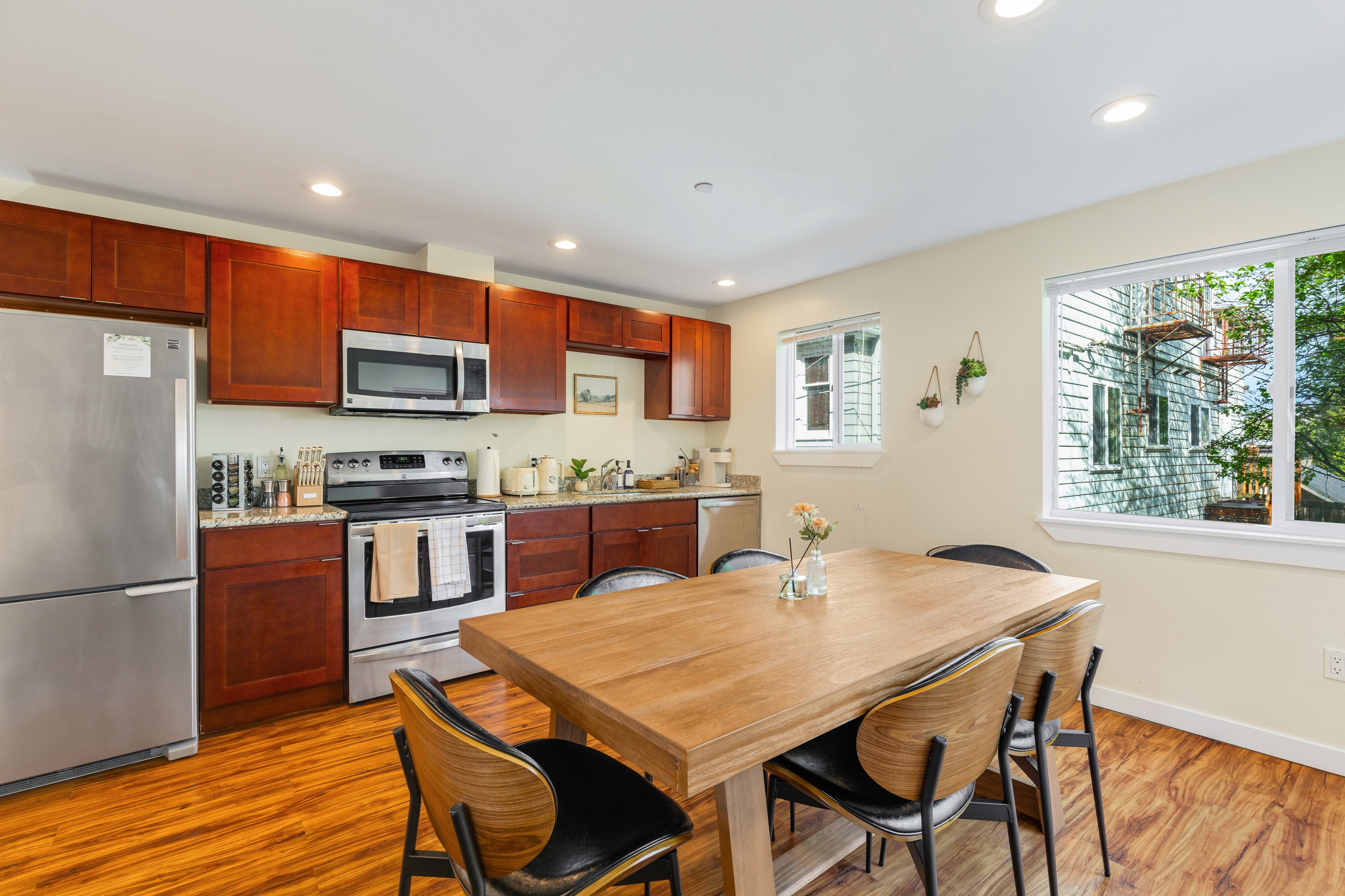 Perfect for a staycation, business trip, or city getaway, this stylish upper-level unit offers the same modern comforts with added privacy and a cozy atmosphere.Featuring 2 king bedrooms, 2 bathrooms, a fully equipped kitchen, dining area, and inviting living room, it’s an ideal space for up to 4 guests. Enjoy peaceful mornings and restful evenings while being just 7 minutes by car or a 20-minute walk to the Space Needle, and 12 minutes to Pike Place Market. Whether you’re exploring the city or unwinding indoors, this 2nd floor retreat provides the perfect balance of tranquility and convenience in the heart of Seattle.